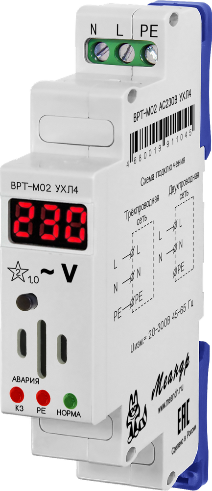 Измеритель тока короткого замыкания ВРТ-М02 арт. 4680019911045 (далее ВРТ-М02) предназначен для контроля текущего значения напряжения в электрических цепях переменного тока, а так же постоянного контроля величины тока короткого замыкания в цепи "Фаза-Ноль" и отслеживания защитного проводника PE.